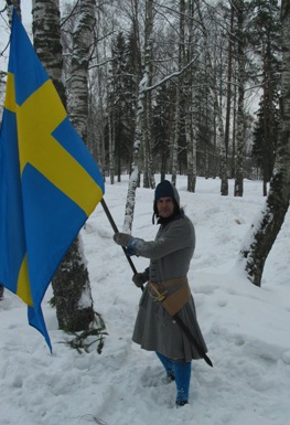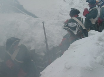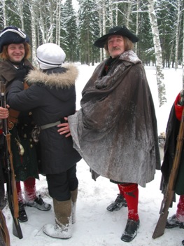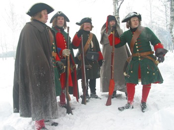 *** Во время съемок ни одно животное не пострадало, если не считать сильно замерзших нас... Очередные эпизоды фильма о Петре Первом от канала National Geographic (прошлой осенью мы уже снимались в качестве победителей при Полтаве и строителей Петербурга); на этот раз снимались эпизоды из начала Северной войны, где русским солдатам досталось нелегко - поражение под Нарвой в 1700 году. Наши мундиры, конечно же не соответствовали изображаемому периоду лет на 8, но странные одежды всей остальной массовки и удивительные взгляды авторов фильма на быт и тактику изображаемой эпохи нас уже не расстраивали, мы с этим смирились. Как реконструкторы, имеющие отношение к эпохе, мы смогли лишь продемонстрировать для камеры исторически достоверные учения с ружейными приемами в одной из сцен. В остальном, мы бродили по сугробам пешком и на лыжах, принимали смерть от рук "шведов", валялись трупами на снегу и покрывались нарисованными травмами на биваке после неудачного боя. В целом, получившиеся эпизоды должны наглядно показать зрителям, какие лишения и потери пришлось перенести Петру и русской армии, чтобы добиться в итоге победы в Северной войне. Интересно будет посмотреть на результат - возможно серия будет готова к сентябрю 2006 г.