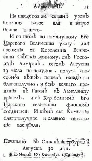 *** Генеральное известие воинским действам Его Царского Величества Всероссийского, галерного флота настоящия компании 1719*.