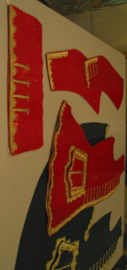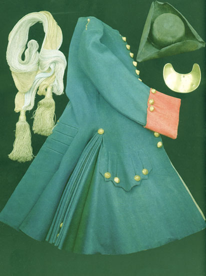 «... гобоистам довольно петли обшить золотом, также на плечах полмесяца сделать и не класть галунами золотыми, а у барабанщиков на плечах полмесяца шерстяными галунами, а денег чаю можете и из полковых сыскать".