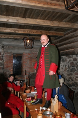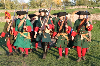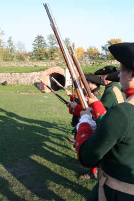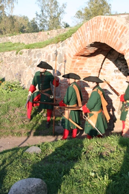 взят русскими войсками. В выезде приняли участие преображенцы из Санкт-Петербурга и Нарвы, питерские новобранцы и наши друзья из Москвы. Мы традиционно занимались экзерцициями; за ними наблюдали местные жители и туристы, которым мы охотно рассказывали, кто мы такие и что тут делаем. Из новых "фишек" той эпохи, в этот раз мы отработали метод ведения огня в узком пространстве ворот, а также различные методы стрельбы из-за парапета крепостной стены ( сожалению, эта часть учений осталась незапечатленной). Из забавного: нам было позволено развести костер для варки каши прямо на территории крепости. Дым из-за стен заметили местные жители и в какой-то момент у нас на крепостной стене появились пожарные, забравшиеся туда по приставной лестнице. За доблестный (и, слава богу, бесполезный) штурм наши кашевары с удовольствием угостили приозерских огнеборцев кашей и напитками :)