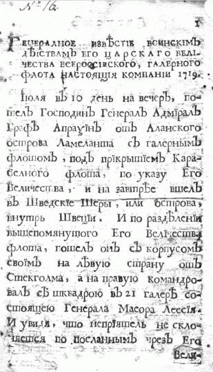 *** Генеральное известие воинским действам Его Царского Величества Всероссийского, галерного флота настоящия компании 1719*.